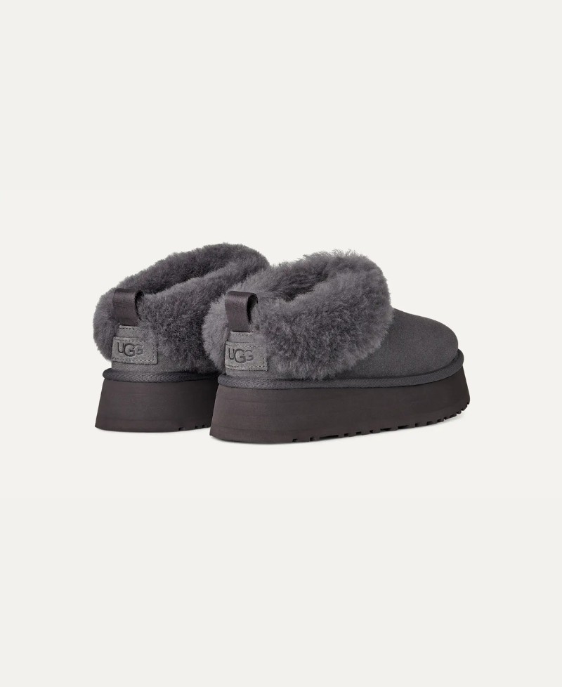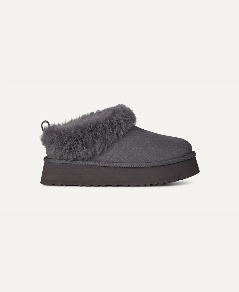 Deze ultrazachte pantoffels voor binnen en buiten zijn gemaakt van echt suède en hebben een lichtgewicht plateauzool. De binnenkant is bekleed met sheepskin, dat doorloopt tot aan de prachtige, vaste omslagboord, zodat je deze pantoffels met of zonder sokken kunt dragen.