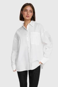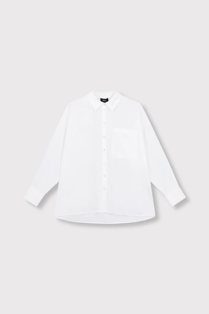 Oversized blouse, gemaakt van een rijke katoenen stof. Met een 'ALIX'-borduursel op de kraag, een 'ALIX THE LABEL'-artwork op de rug en een stierenborduursel op de mouw.