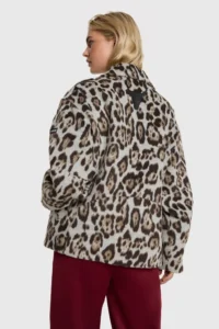Bikerjack van een zachte geweven stof. Jacket is ontworpen met een grote jaguarprint all-over met een 'ALIX THE LABEL'-label op de mouw en een geborduurde stier op de rug.