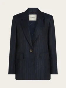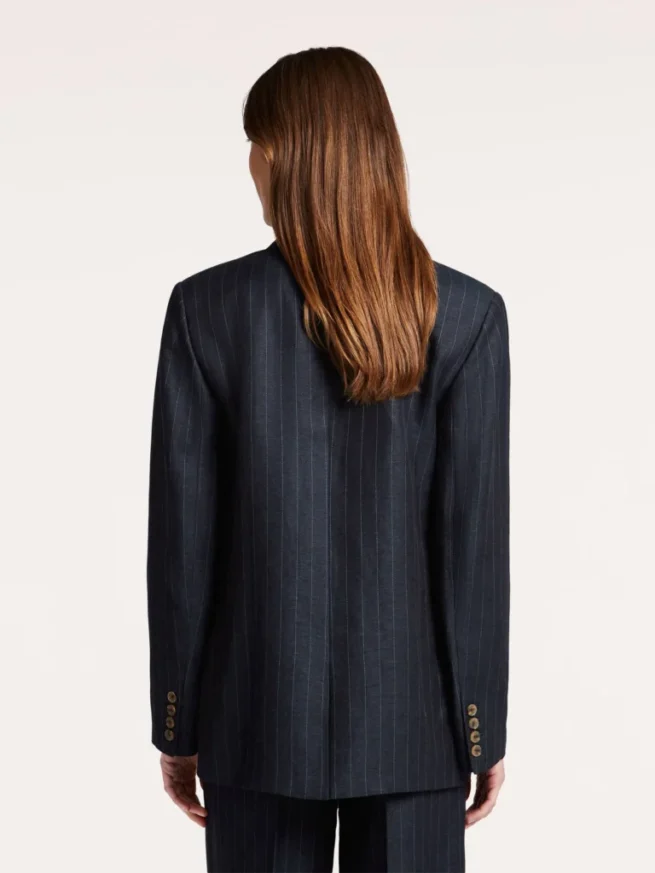 Deze gestreepte blazer in een viscose-linnen kwaliteit heeft een stijlvolle en luchtige uitstraling. Het model is voorzien van een knoopsluiting middenvoor, borstzak, klepzakken en mouwen met een split en vier knopen. De volledige voering zorgt voor extra comfort en een nette afwerking.