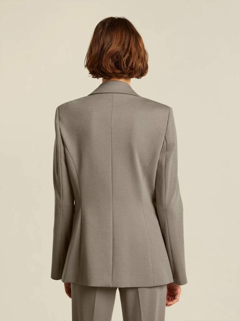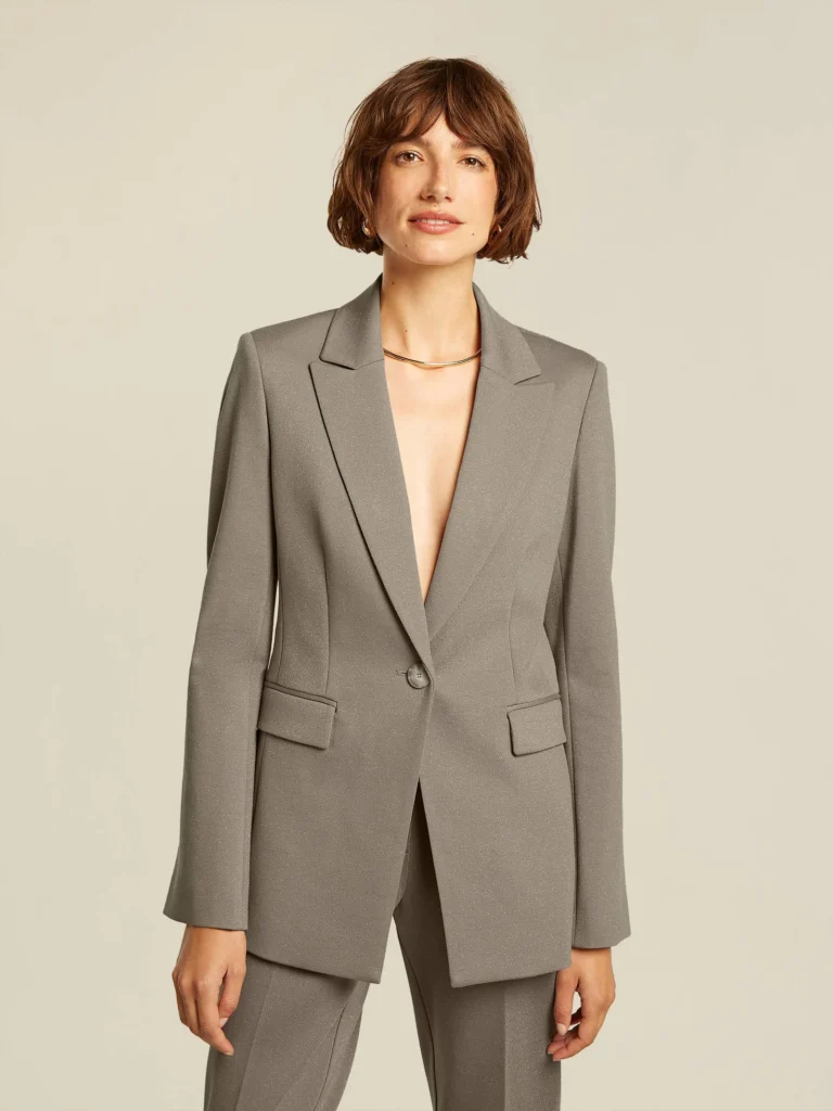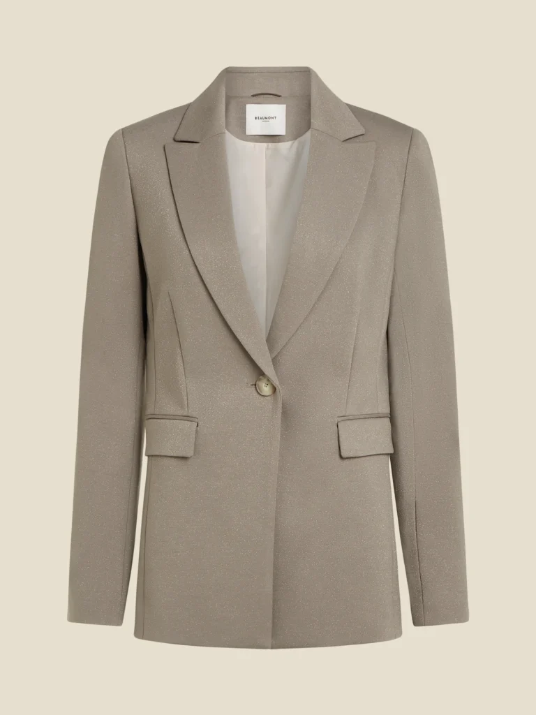 Mid-lange blazer van comfortabel jersey materiaal. De blazer heeft een glitter lurex stof.