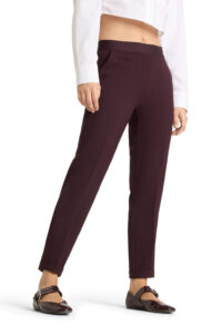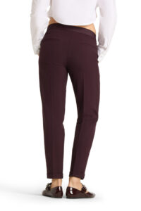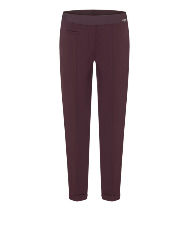 Mooie burgundykleurige broek van elastische tailleband.