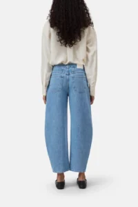 De Jazzie jeans heeft een tonvormige pasvorm met een middelhoge taille en cropped pijpen. De lichtgewicht denimstof van 8,5 oz, gemaakt van biologisch en gerecycled katoen, maakt indruk met zijn uitzonderlijk zachte gevoel en authentieke uitstraling.