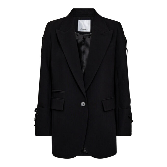 Mooie zwarte blazer met veterdetail op de mouwen.