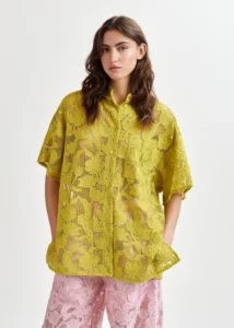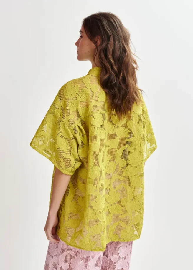 Overhemd ontworpen in een praktische oversized snit, als de perfecte mix tussen verfijning en comfort. Het silhouet is afgewerkt met een maokraag en knoopsluiting. Delicaat borduurwerk zorgt voor een vleugje elegantie, terwijl weldoordachte details zoals zijsplitten en een borstzakje het ontwerp af maken