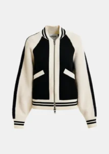 Bomberjack in fijn breiwerk voor een uiterst zacht gevoel, afgewerkt met inzetstukken in pluizig faux fur langs de mouwen en op de voorkant. Het heeft een relaxte pasvorm met raglanschouders voor extra beweeggemak en een opvallende ritssluiting vooraan. Gestreepte ribgebreide boorden zorgen voor een verzorgd silhouet.