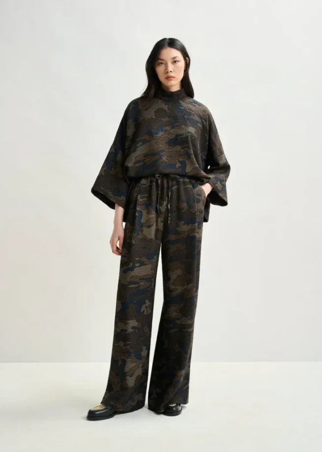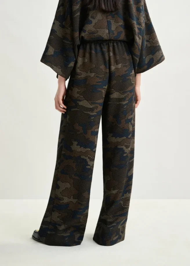 Broek vervaardigd van een gerecyclede polyestermix met een subtiel getextureerde afwerking. Hij rust comfortabel hoog in de taille en past zich met zijn trekkoord perfect aan. Afgewerkt met schuine steekzakken voor al jouw essentials.