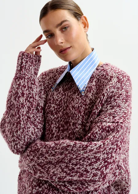 Til elke outfit naar een hoger niveau met deze verwijderbare kraag met streepmotief, vervaardigd van 100% katoen. Het klassieke puntige ontwerp is versierd met glazen stras aan de uiteinden voor een subtiele dosis schittering, terwijl de enkele knoopsluiting garandeert dat hij goed blijft zitten. Perfect over een trui, jurk of T-shirt, om een verfijnde uitstraling te creëren met een speelse twist.