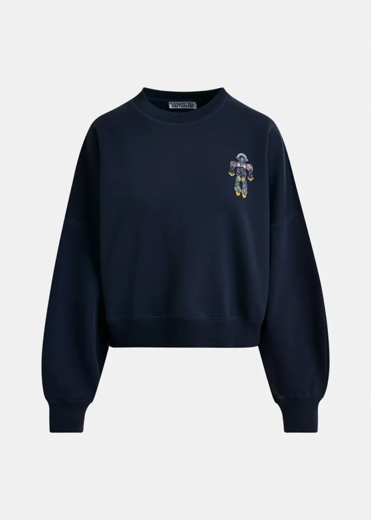 Sweater van zacht katoenen jersey die een relaxte pasvorm combineert met moderne dubbele stiksels voor een moeiteloos stijlvolle uitstraling. Met zijn delicate borduurwerk van pailletten en kralen heeft deze sweater een hele batterij troeven in huis om je extra energie te geven.
