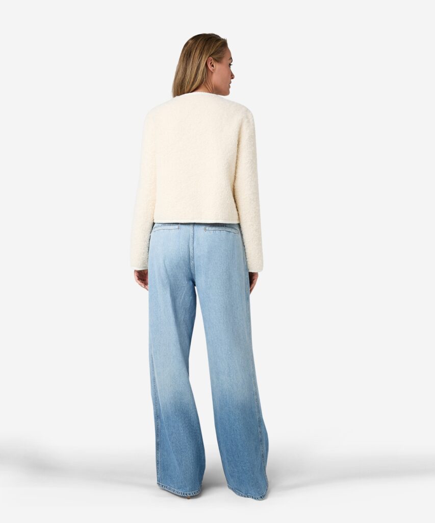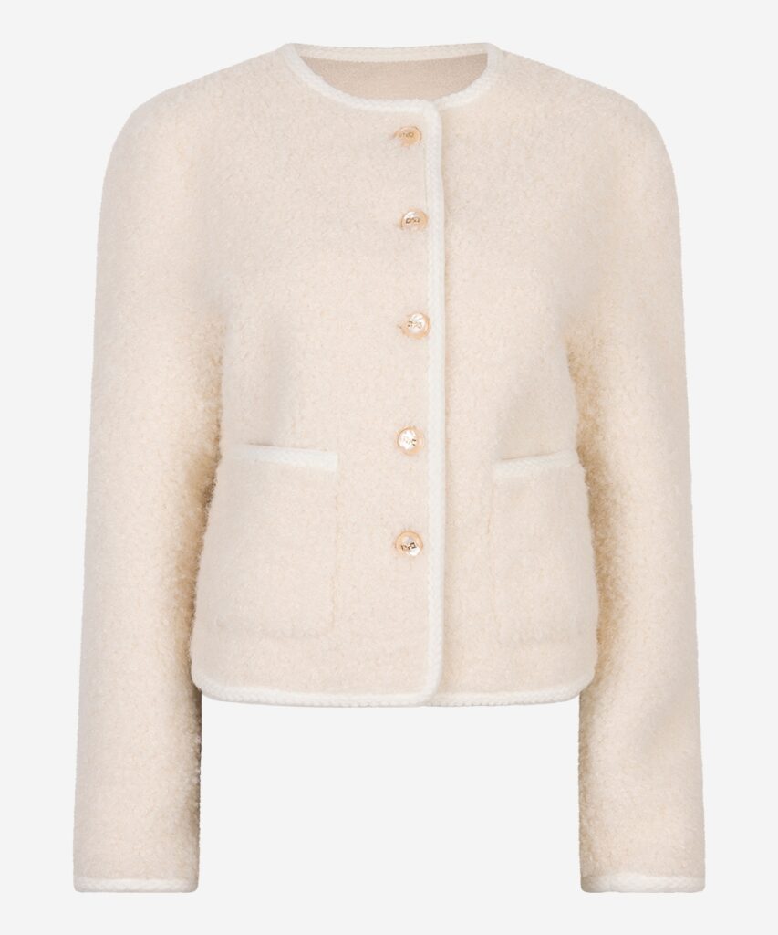 De Celia in de kleur Buttercream is een stijlvolle tussenjas met rechte pasvorm, gemaakt van faux fur teddy stof. De Celia kan ook gemakkelijk gedragen worden als vestje. De gouden knopen maken de Celia helemaal af en fashionable.