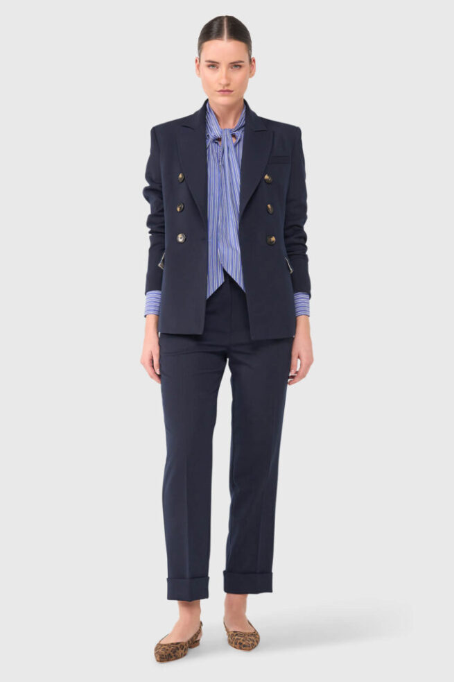 Deze donkerblauw getailleerde dames blazer, de Connor blazer van JANICE, is een stijlvolle en veelzijdige blazer die zowel chic als comfortabel is. Deze donker blauwe blazer is de perfecte keuze voor elke modebewuste vrouw. Gemaakt van hoogwaardige stoffen en een klein beetje stretch, voelt deze blazer niet alleen zacht en licht aan maar heeft hij ook ultiem draagcomfort.