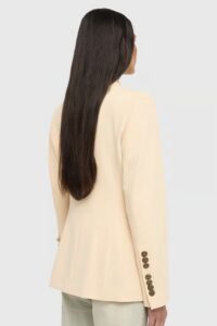 De blazer dames knopen getailleerd CONNOR peach van JANICE is een elegante toevoeging aan een moderne garderobe. Deze luxe dames blazer is uitgevoerd in een zachte peach tint en gemaakt van een rijke kwaliteit met 69% polyester, 24% viscose en 7% elastane. De lichte stretch en nauwsluitende belijning zorgen ervoor dat dit ontwerp mooi langs het lichaam valt zonder strak te zitten. Het blazertje volgt subtiel de taille en heupen en valt tot de helft van de heupen, waardoor het een verfijnde en vrouwelijke uitstraling heeft.