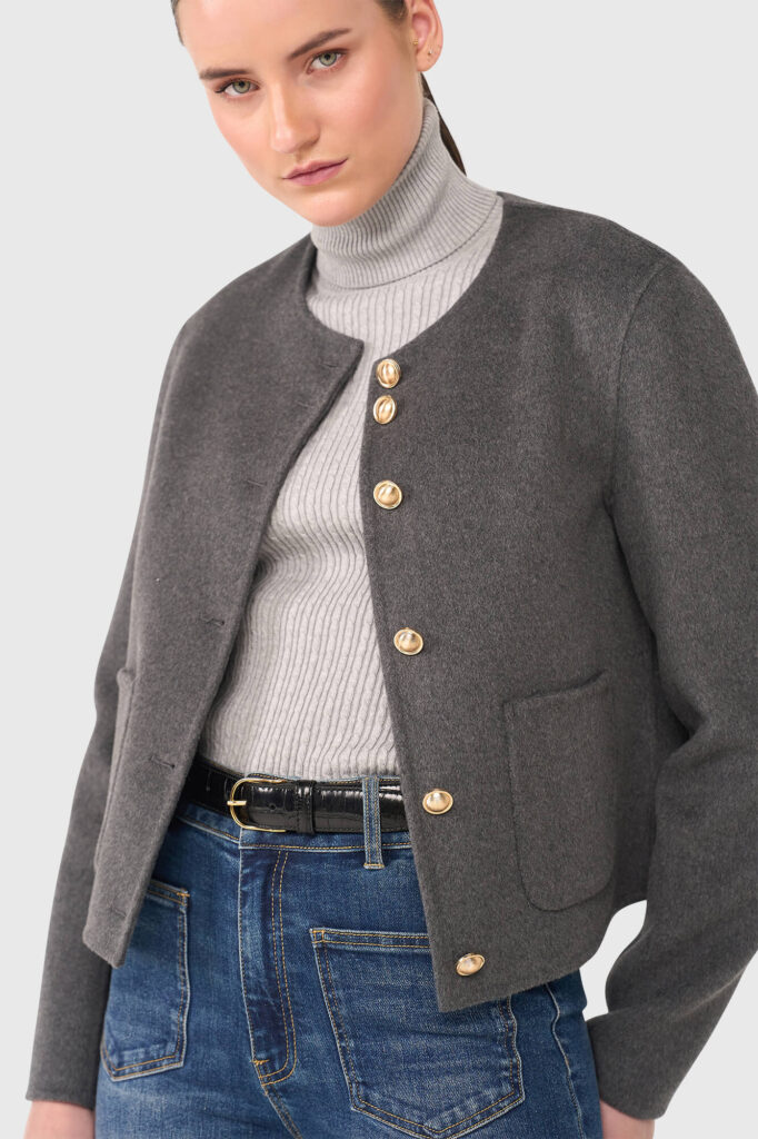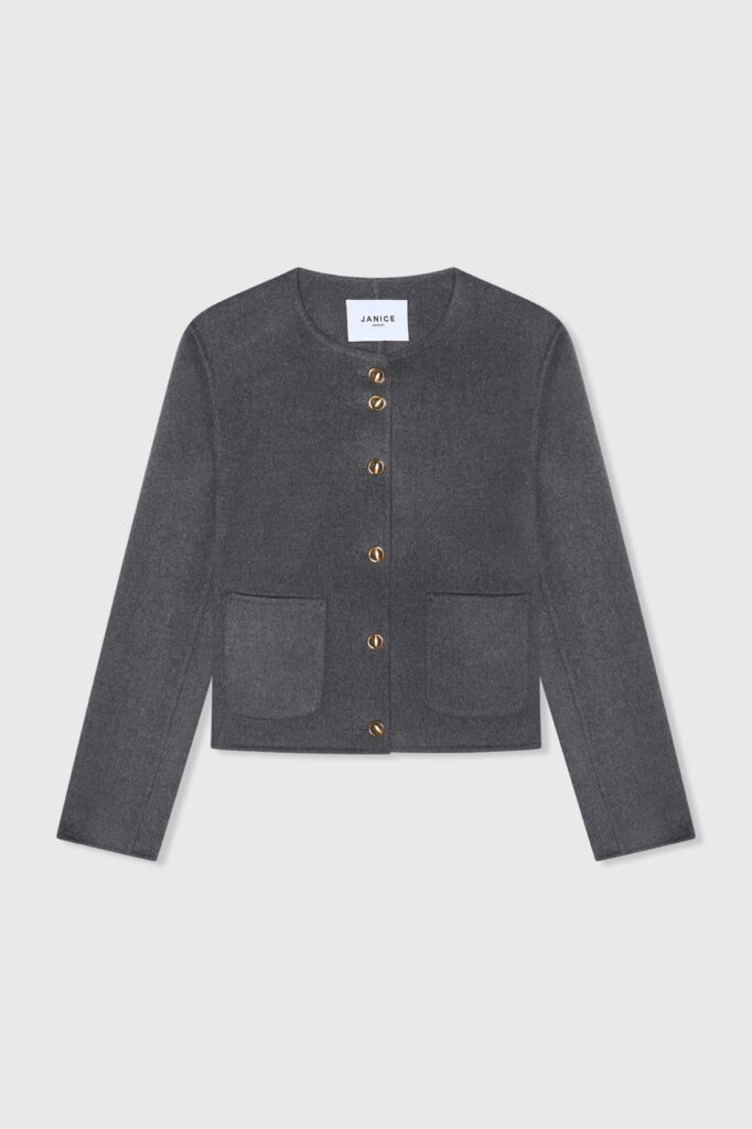 Het Grijs Cashmere Dames Jack, de VINCE van JANICE, is de perfecte mix van elegantie en comfort. Dit unieke jasje is gemaakt van een luxe cashmere blend, met een samenstelling van 32,3% cashmere en 67,7% wol, wat zorgt voor een zijdezachte, lichte feel. Het korte dames jasje is ideaal voor vrouwen die op zoek zijn naar een stijlvolle, veelzijdige jas die zowel casual als formeel gedragen kan worden. Met zijn verfijnde ontwerp en zachte kleur, voegt dit jasje een vrouwelijke touch toe aan elke outfit.