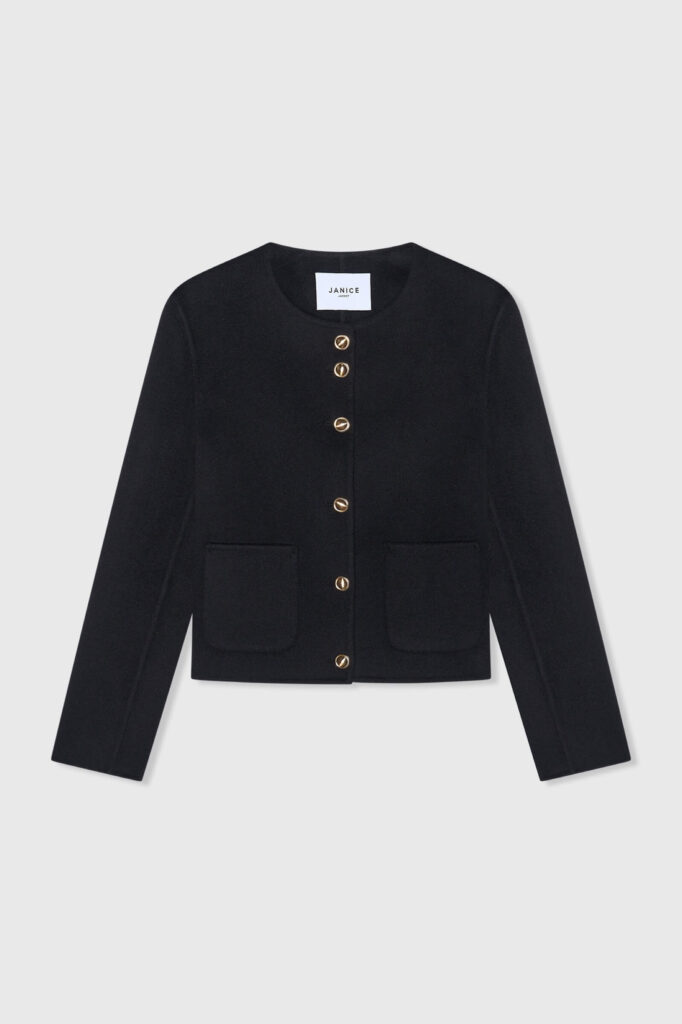 Het Zwart Cashmere Dames Jack, de VINCE van JANICE, is de perfecte mix van elegantie en comfort. Dit unieke jasje is gemaakt van een luxe cashmere blend, met een samenstelling van 32,3% cashmere en 67,7% wol, wat zorgt voor een zijdezachte, lichte feel. Het korte dames jasje is ideaal voor vrouwen die op zoek zijn naar een stijlvolle, veelzijdige jas die zowel casual als formeel gedragen kan worden. Met zijn verfijnde ontwerp en zachte kleur, voegt dit jasje een vrouwelijke touch toe aan elke outfit.