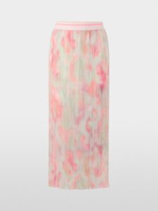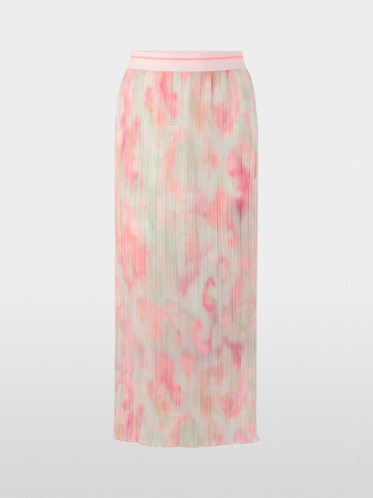 Geplisseerde midirok van soepelvallende, lichte stof. Het hoogtepunt van de rok is de kleurrijke all-over print. De praktische elastische tailleband zorgt voor perfect draagcomfort en wordt aangevuld met een contrasterende strook in dezelfde kleur. De combinatie van structuur, kleurverloop en sportieve tailleband geeft het model een moderne en tegelijkertijd vrouwelijke uitstraling.