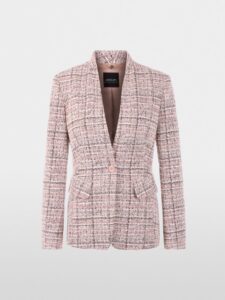 De elegante blazer heeft een getailleerde pasvorm en valt op door een kleine opstaande kraag zonder revers. Hij wordt gesloten met een knoop. Gemaakt van een hoogwaardige materiaalmix met wol, voelt hij zacht aan en heeft hij een vrouwelijk silhouet. Ideaal in combinatie met de bijpassende broek voor een complete, stijlvolle look.
