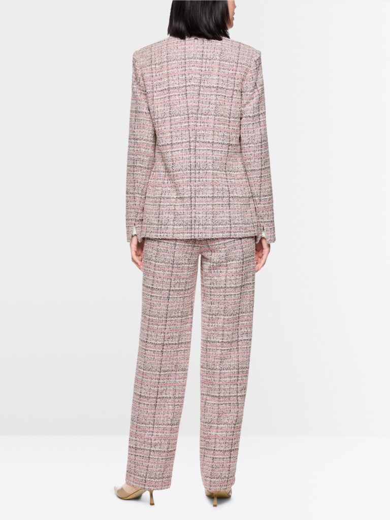 De elegante blazer heeft een getailleerde pasvorm en valt op door een kleine opstaande kraag zonder revers. Hij wordt gesloten met een knoop. Gemaakt van een hoogwaardige materiaalmix met wol, voelt hij zacht aan en heeft hij een vrouwelijk silhouet. Ideaal in combinatie met de bijpassende broek voor een complete, stijlvolle look.