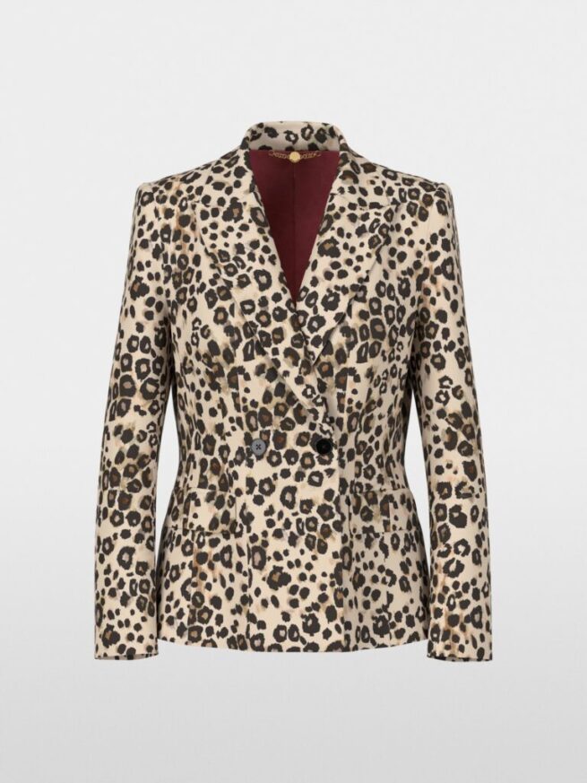 Tweeknoops statement blazer met luipaardprint. Gemaakt van comfortabele scuba-jersey, zit hij niet alleen heerlijk, maar heeft hij ook een elegante pasvorm. De iets getailleerde snit accentueert het figuur en zorgt voor een vrouwelijk silhouet. Deze blazer is veelzijdig te combineren en geschikt voor zowel elegante als casual looks. Een must-have voor modebewuste vrouwen die op zoek zijn naar een bijzonder highlight.
