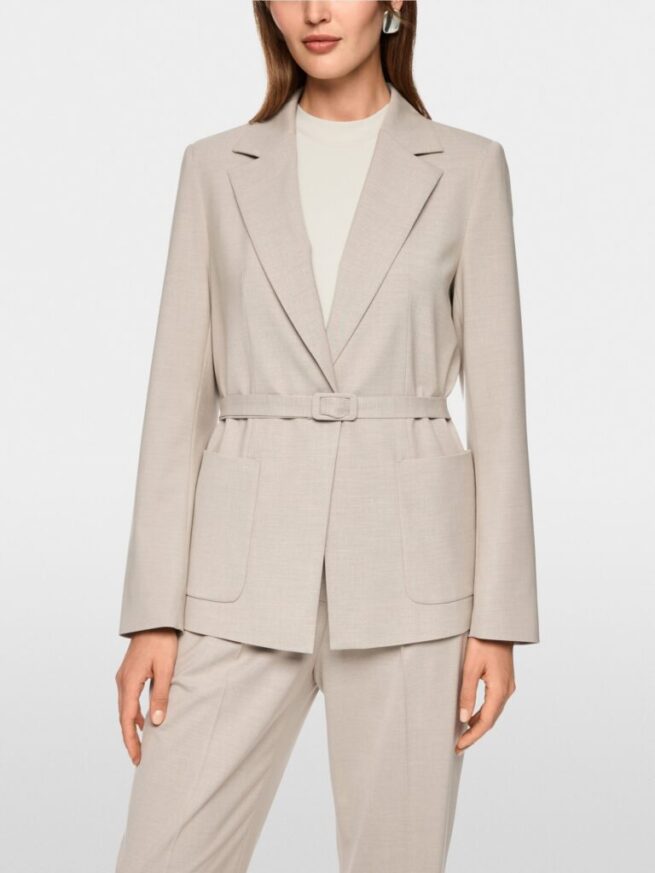 Moderne blazer van viscose en gerecycled polyester. Met een elegante knoop, praktische strikceintuur met sluiting om de taille te accentueren en opgestikte zakken. Perfect voor stijlbewuste looks. Licht, comfortabel en veelzijdig te combineren – een must-have voor elke garderobe!