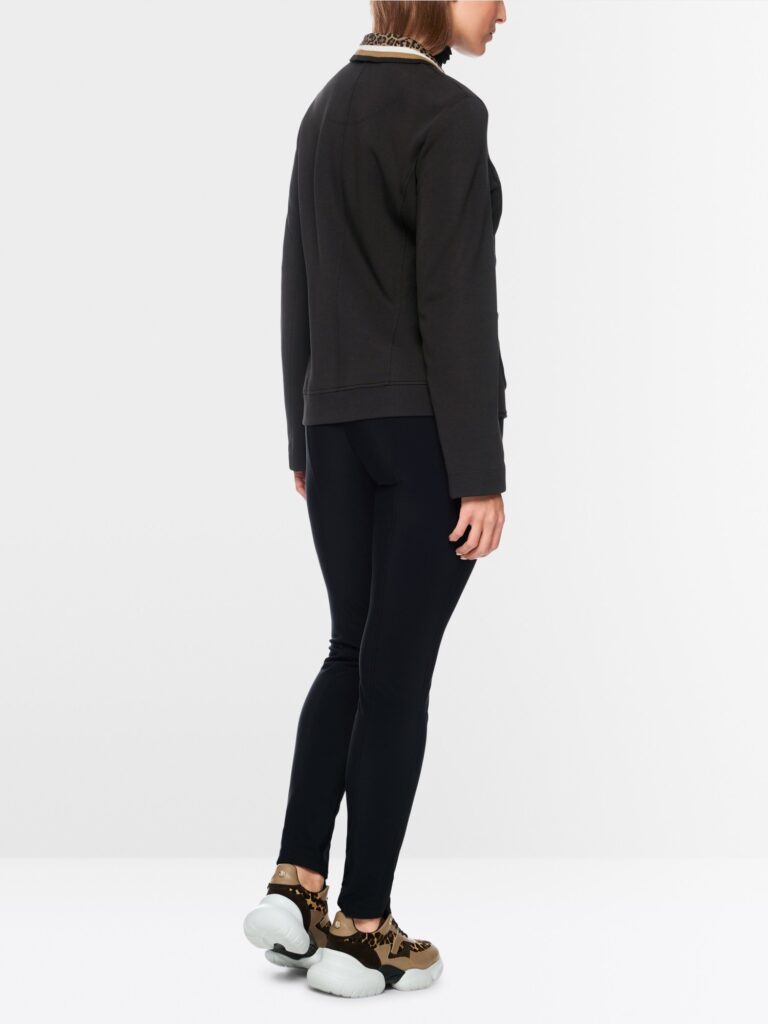 Blazer van zachte beverstof met twee knopen en opgestikte zakken. De kraag is afgewerkt met gestreepte ribstof en luipaardprintdetails, wat de look een moderne touch geeft. Een stijlvolle mix van een klassieke snit en trendy accenten – ideaal voor chique outfits.