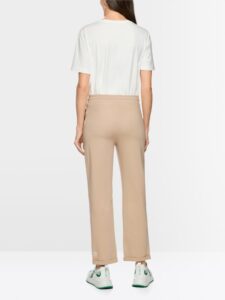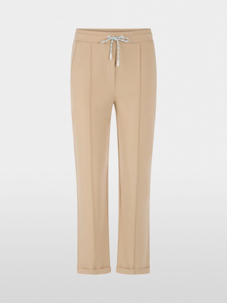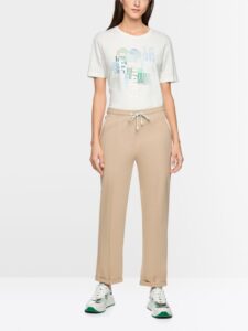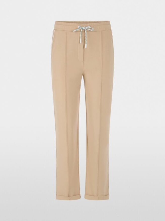 De broek FRIA van een zachte katoenmix met modal en elastaan heeft een vrouwelijke pasvorm en een normale taillehoogte. Smalle omslagen, gestikte persvouwen en een brede, sportieve elastische tailleband met trekkoord zorgen voor modern comfort. Schuine steekzakken met contrasterende details maken deze stijlvolle instapbroek perfect af.