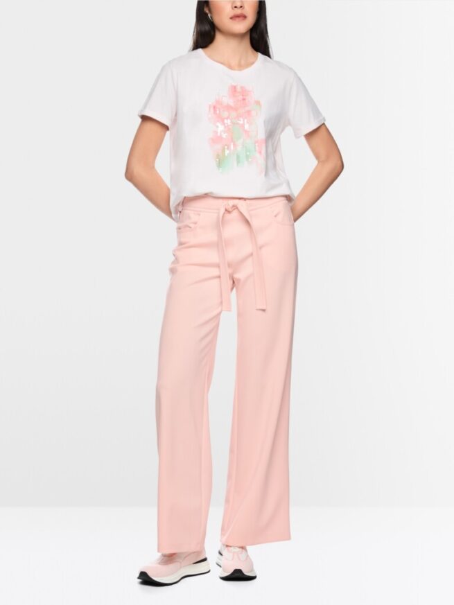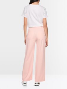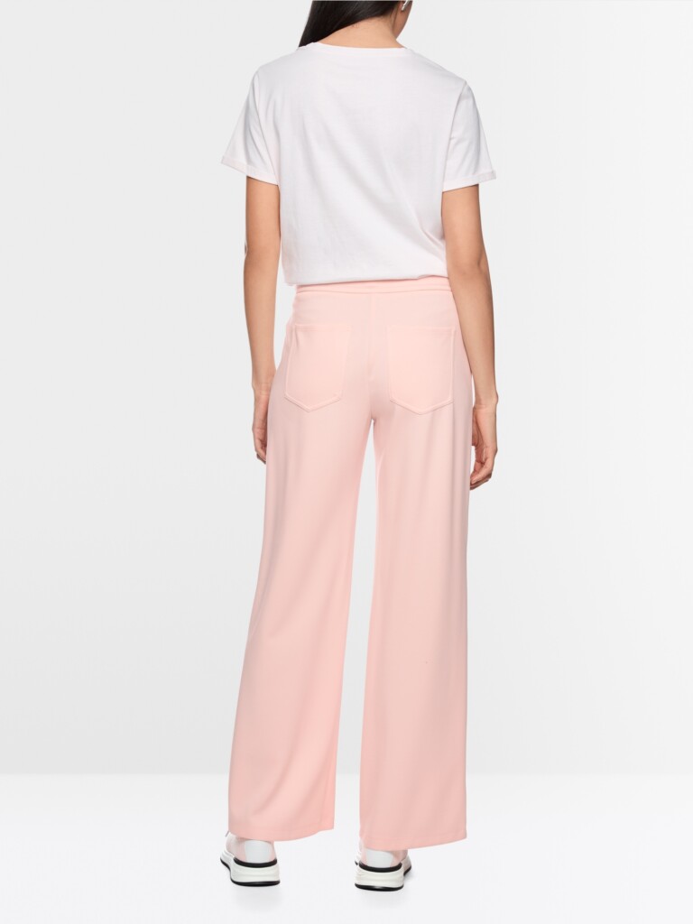 Model WELKOM is een stoffen broek in joggingstijl met een soepelvallend silhouet. Bijzonder modern zijn de wijde pijpen en de brede riem. De elastische tailleband in joggingstijl zorgt voor een aangenaam draagcomfort. Aan de zijkant bevinden zich praktische steekzakken.