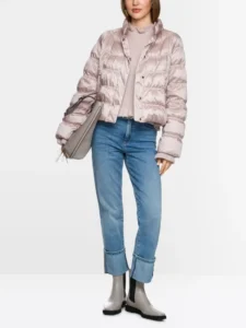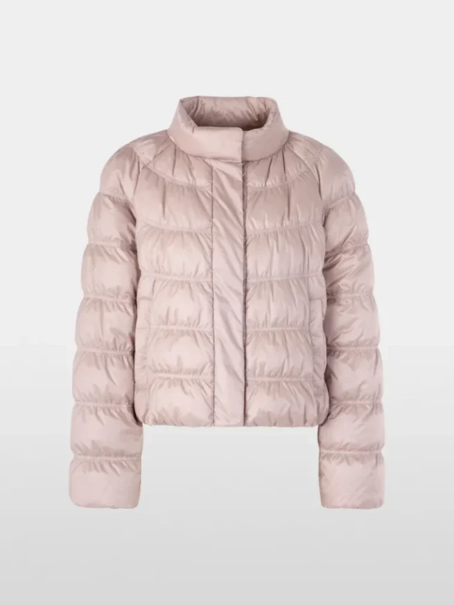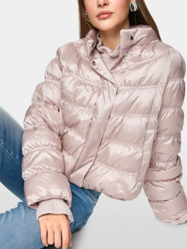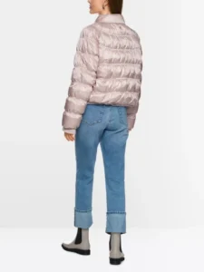 De wijde pasvorm en raglanmouwen geven het jasje met synthetisch dons een relaxte look. Opvallende details zijn de glanzende stof en het bijzondere stiksel. Daarnaast heeft het jasje een opstaande kraag en een verborgen knoopsluiting.