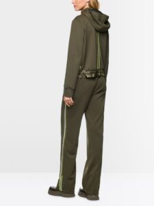 Jasje van licht, rekbaar materiaal. Het model is redelijk wijd en sportief, met een capuchon met meshvoering. In contrast hiermee: lichte ruches aan de zoom. Cool, de kleurverdeling: streepjesdetail op de ritssluiting aan de voorkant, dat doorloopt op de achterkant. Daarnaast zijn er aan de voorkant nog elementen in glanzend materiaal met stiksels.