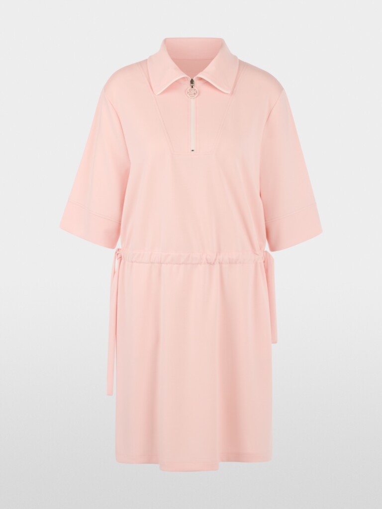 Korte jurk van aangenaam zacht jerseymateriaal met een losse pasvorm. De korte mouwen zijn wijd gesneden en geven de jurk een nonchalante touch. Andere sportieve details zijn de ritssluiting met het Marc Cain Sports-logo, de zakken aan de zijkant en de tailleband. Hierdoor kan de wijdte van de jurk individueel worden aangepast, wat zorgt voor een hoog draagcomfort.