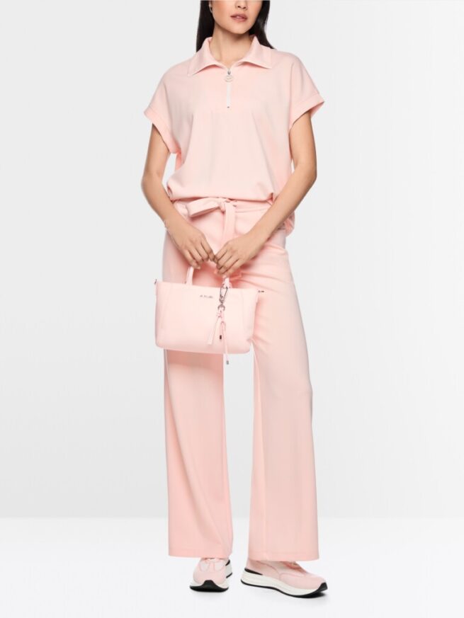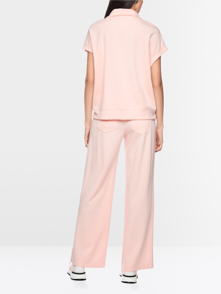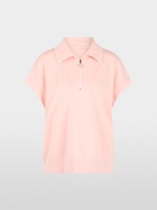 Relaxed fit shirt van een zachte jerseymix met wijde pasvorm. Het shirt valt op door de losse pasvorm, de korte mouwen en de kraag. De brede band en de zijsplitten maken de sportieve look compleet. De kraag is voorzien van een ritssluiting met Marc Cain Sports-logo en kan daardoor open of als opstaande kraag worden gedragen.