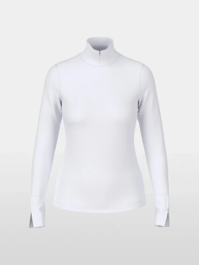 Zacht T-shirt van katoen met elastaan. Dit T-shirt is de ideale basic voor koelere dagen. Het heeft een col en lange mouwen. Opvallend detail is het sierlijke knoopje op de split in de mouwboord. Het getailleerde silhouet accentueert het figuur.