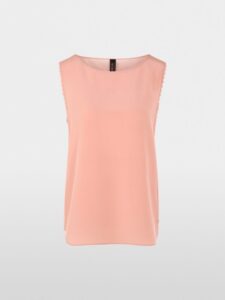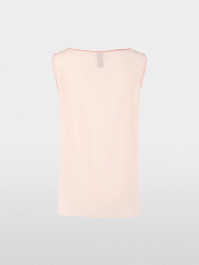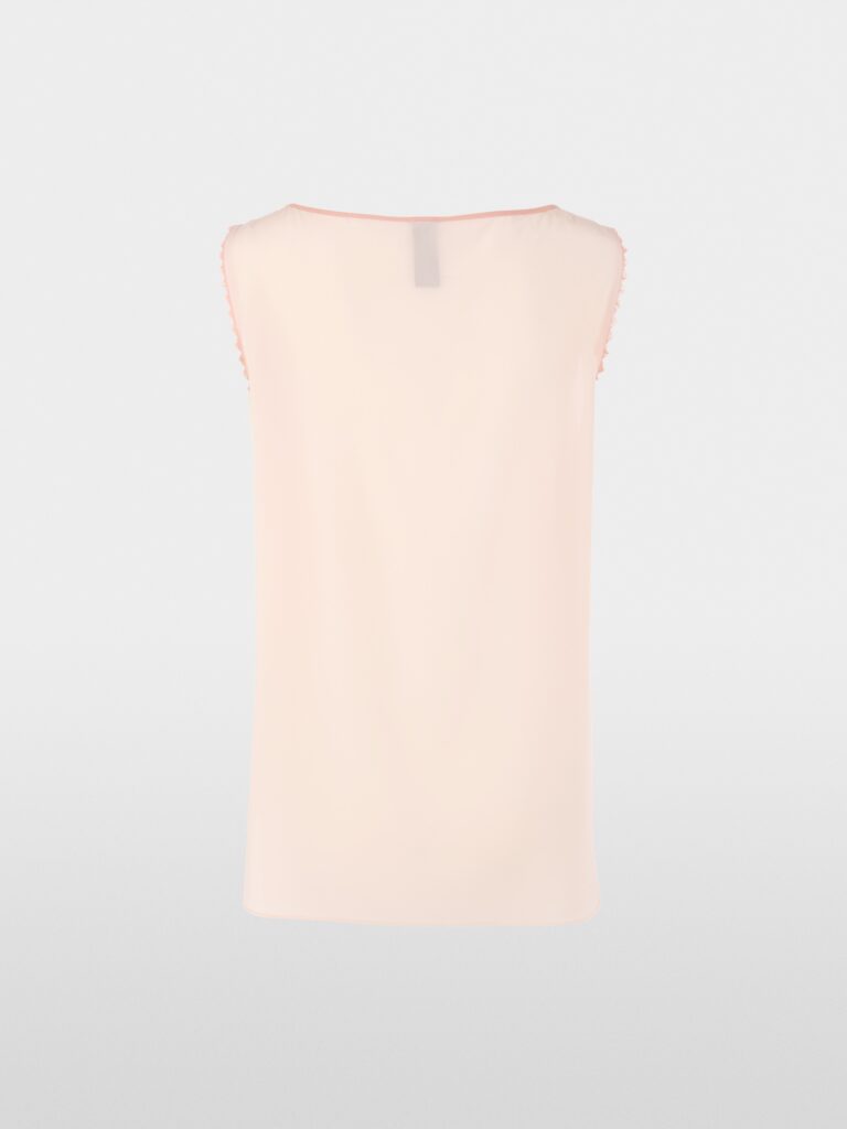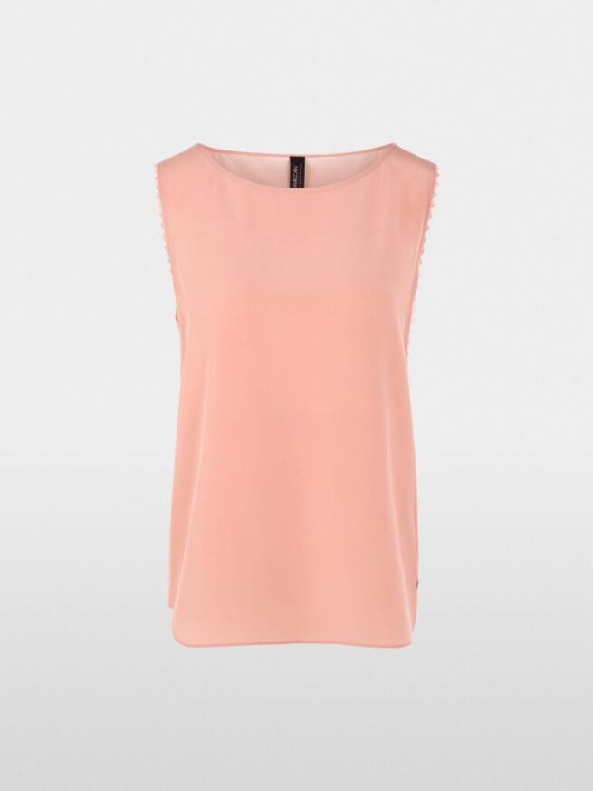 De elegante top is gemaakt van pure zijde met een klassieke ronde halslijn. De armsgaten zijn subtiel afgewerkt met kant en zorgen zo voor een vrouwelijke toets. Het moderne colourblocking-ontwerp met verschillend gekleurde voor- en achterkant geeft de top een elegante en tegelijkertijd modieuze look. Ideaal voor stijlvolle combinaties.