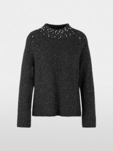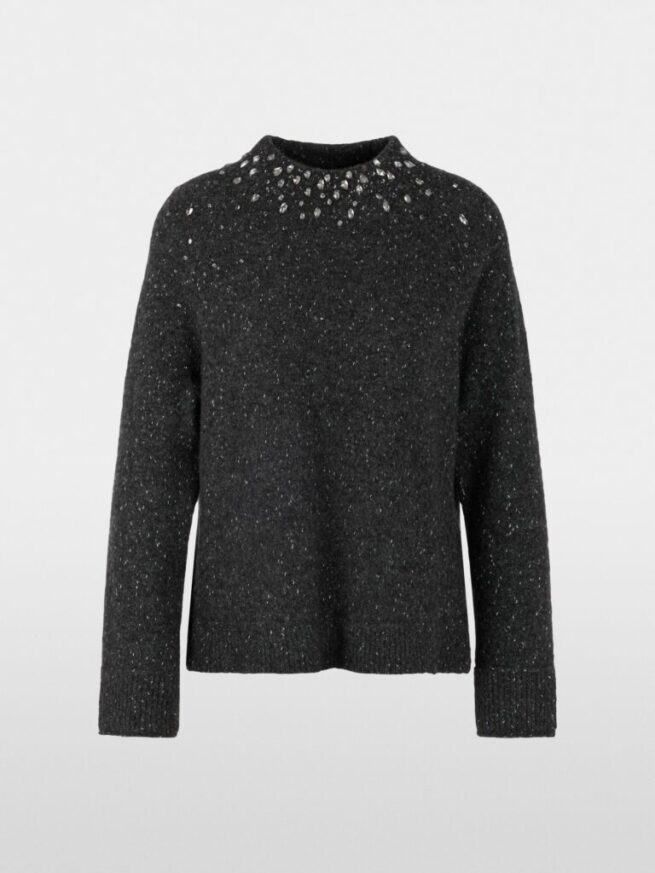 Elegante trui van een zachte alpacamix met glinsterende siersteentjes en verfijnde lurexgarendetails. De opstaande kraag geeft een moderne, elegante touch. Perfect voor speciale gelegenheden of stijlvolle alledaagse looks met dat tikkeltje extra.