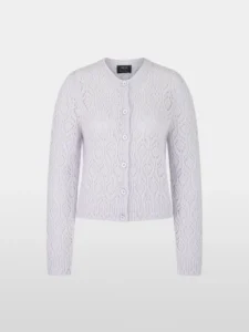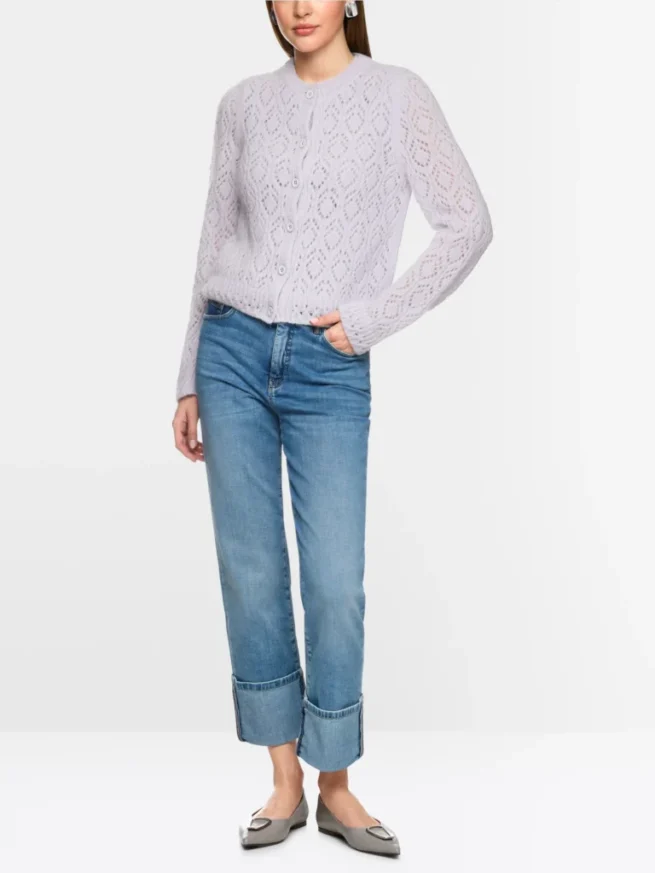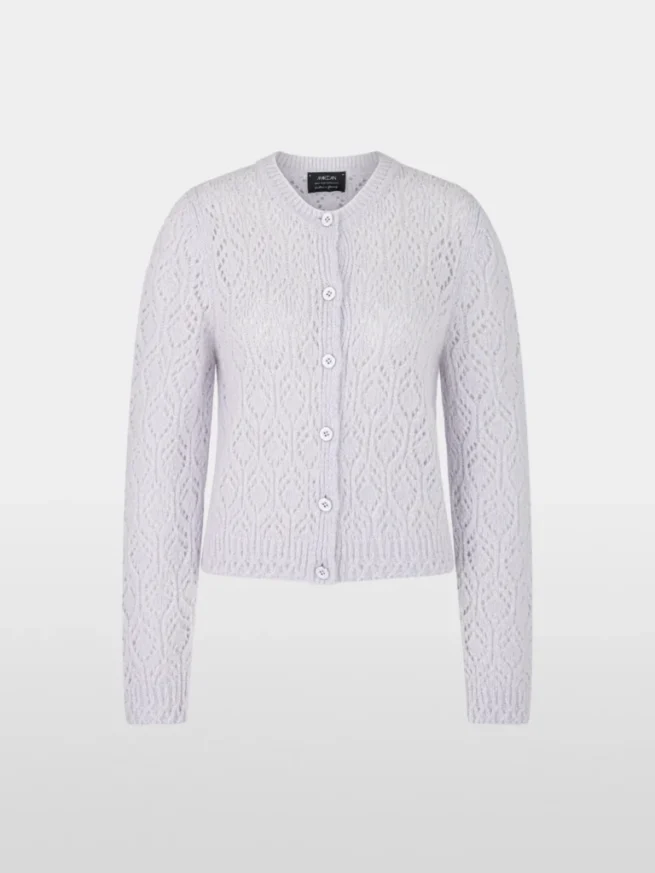 Fijne cardigan met delicaat opengewerkt breipatroon. Door de nauwsluitende pasvorm ziet hij er bijzonder elegant uit.