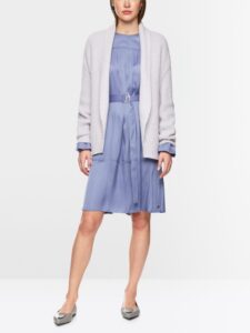 Het klassieke vest heeft een sjaalkraag en is dankzij de wijde pasvorm bijzonder comfortabel om te dragen.