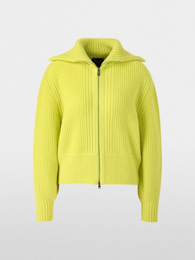 Deze cardigan is aangenaam warm. Hij heeft een relaxte pasvorm met een hoge kraag. De jas wordt gesloten met een tweewegritssluiting.