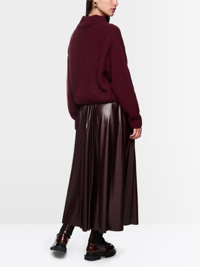 Deze knusse trui met wijde mouwen en opstaande kraag zorgt voor ultiem comfort. Het alpacagedeelte maakt hem bijzonder zacht, terwijl de raglanmouwen en de losse, ballonachtige snit zorgen voor een moderne pasvorm. Perfect voor gezellige, stijlvolle looks in het koude seizoen