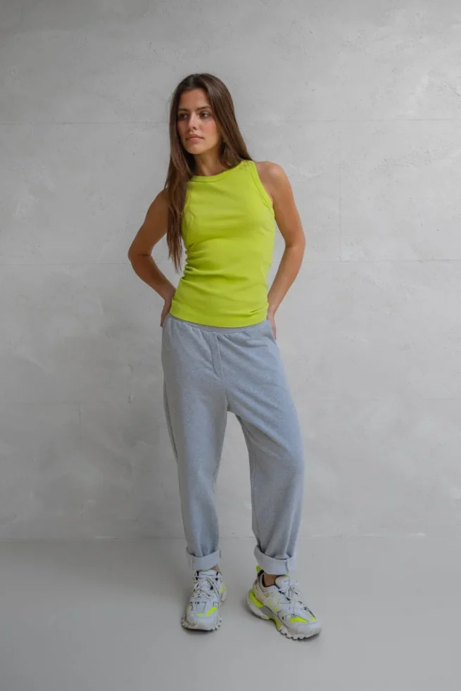 Deze rechte joggingbroek in grijs melange combineert een relaxed silhouet met een elastische tailleband, voor zowel comfort als een moeiteloze stijl.