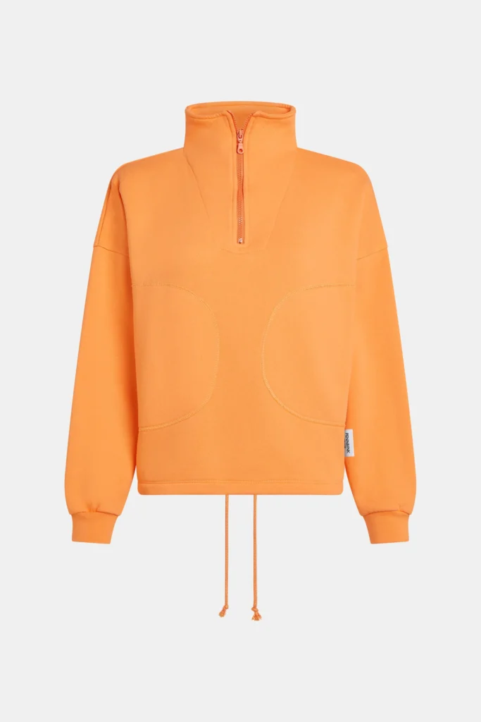 Deze moderne trui heeft een relaxte pasvorm en is ontworpen met een halve ritssluiting en subtiele naaddetails voor een eigentijdse look. De zachte stof en de verstelbare zoom met trekkoord bieden zowel comfort als veelzijdigheid voor dagelijks gebruik.