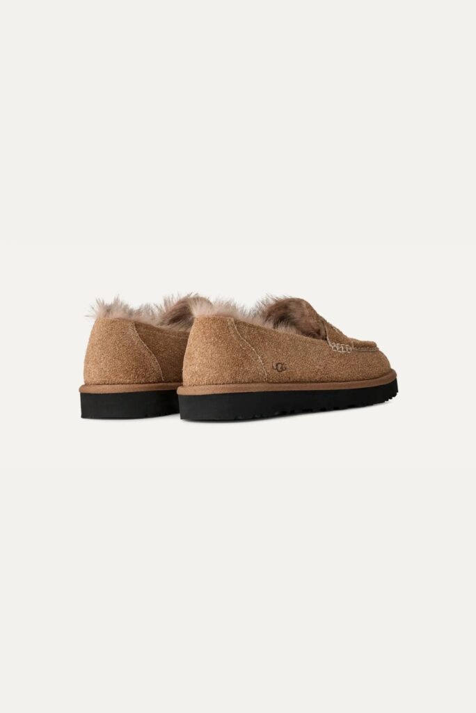 De Ellis: een loafer op de UGG®-manier. Hij is gemaakt met zichtbare sheepskin en beschikt over een bovenstuk van harige suède voor een stijlvolle uitstraling.