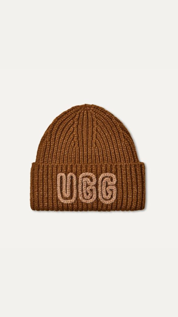Deze Chunky Crafted Rib is een ultrazachte muts van een wolmix met een brede omslagboord die een contrasterend gehaakt UGG®-logo accentueert.